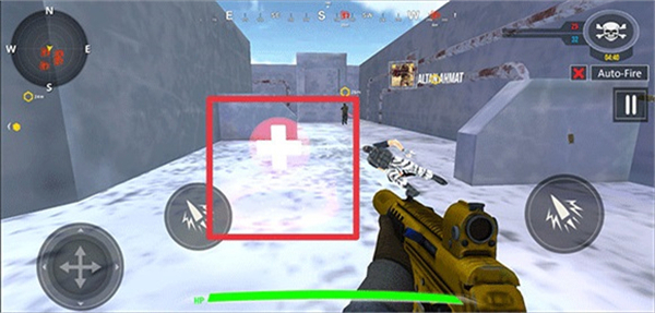 2、进入游戏后利用左下角轮盘控制角色的移动,右边为射击按钮