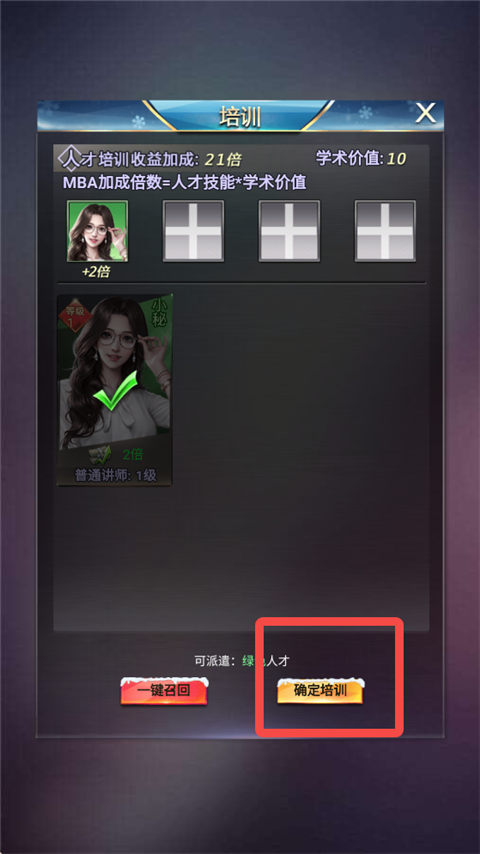 人才得到培训后,赚速也会相对提高,主场景上的建筑等级越高,培训的收益效果越高。