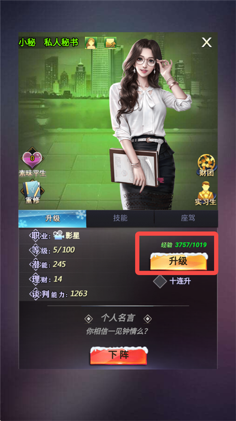 人才等级可消耗经验进行提升,升级可增加人才基础能力值(人才潜能、座驾潜能、飞机潜能、游艇潜能、专座技能均对基础能力产生影响)。