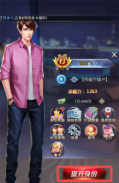 达到一定的赚钱速度可以提升身份等级。