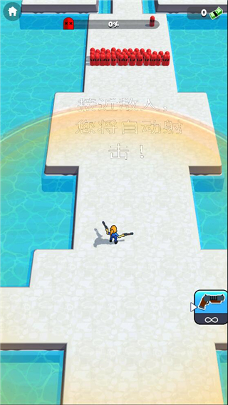突突冲锋队(Bullet Rush)是一款非常治愈解压休闲射击游戏。游戏画风一如既往的采用了低模风格打造,大量关卡集成的魔性挑战玩法,可让你根本停不下来,丰富的射击细节,流畅的动作,还提供了简洁的枪支体系,在摒弃了众多背景元素之后,简化了游戏的动作射击体验,以较为宽松的游戏氛围迎合着各种玩家。虽然是射击游戏,但是你无需担心自己是个手残党瞄不准目标,因为你无需瞄准目标,随便的向敌人疯狂扫射就可以击倒敌人,简单粗暴的玩法增加你对游戏的信心。