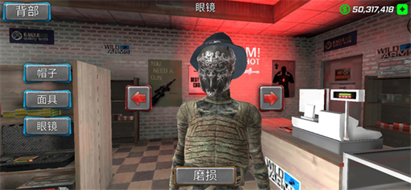 3、在字符选项中,我们还可以选择购买不同的皮肤、帽子、眼镜、面具,并对其的搭配;