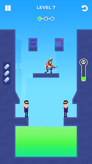 不过需注意每一颗子弹就相当于一次机会,也就是说有一定的机会限制,多以每次的攻击都务必十分的小心、谨慎决策,判断抛物线和落点,计算好每一次路线,否则哪怕出一个岔子,敌人就会逮住你。魔性的玩法、逗趣的风格,必将给予您别样的趣味休闲体验。