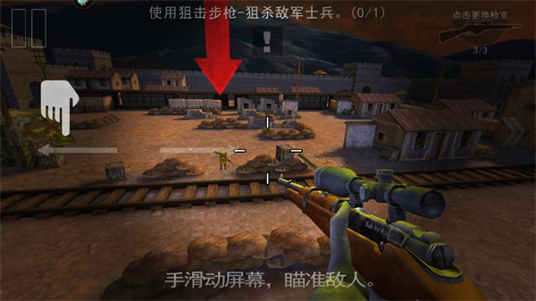 5、这里需要完成游戏给出的任务,使用狙击步枪,狙杀敌军士兵,然后点击继续游戏;