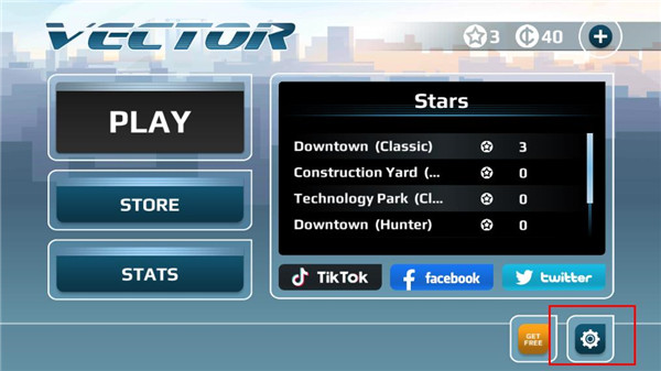 1、在本站下载矢量跑酷中文版,进入游戏界面,点击右下角齿轮。