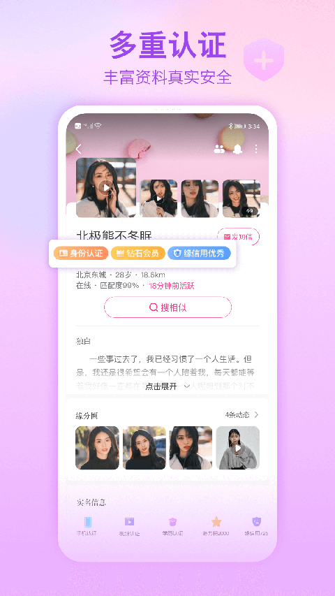 认证邀请功能:邀请对方完成婚姻、学历核验,提升彼此信任度。