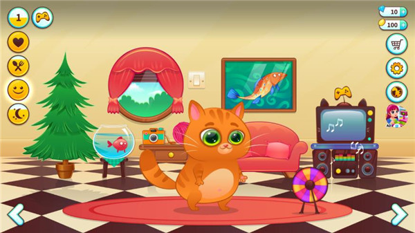 我的虚拟宠物猫中文版是一款模拟养成类休闲游戏,你所养成的bubu,是一只可爱的、有感情的、讨人喜爱的小猫,喜欢吃美食、自拍、拜访朋友和跳舞。游戏采用的是卡通风格,场景画面制作的很是精致,玩家不仅可以查看可爱呆萌的小猫咪玩耍,还可以在线和猫咪进行互动,解锁各种各样的道具,在bubu的家里享受乐趣,了解宠物生活中的其它秘密。