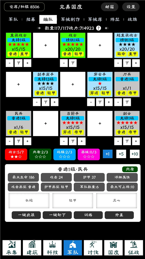 防御和生命值相对较高,在前期的战斗中能更好地承担前排抗伤的任务,为后排的弓箭手等输出兵种提供稳定的输出环境。