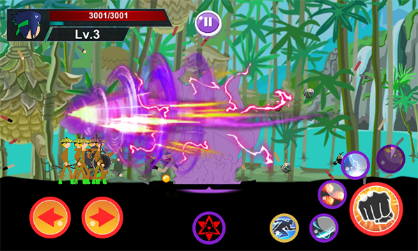 火柴人火影忍者2采用了常见的横版操作方式,左右控制角色移动,右边则是攻击以及各种炫酷强大的技能释放按键,玩家可以更加轻松进行畅玩。区别于同类格斗闯关游戏而言,火柴人火影忍者2中设计了各种巧妙地关卡以及挑战,甚至是独特的角色培养系统,你可以帮助自己心仪的火影角色进行升级、进阶、穿戴各种装备,在战斗中更加轻松地战胜对手,获得游戏胜利。另外,得益于强大的引擎辅助技术,整个战斗场面非常激烈,流畅的连招释放,还原度极高的火影技能,赋予了玩家极大的趣味性。