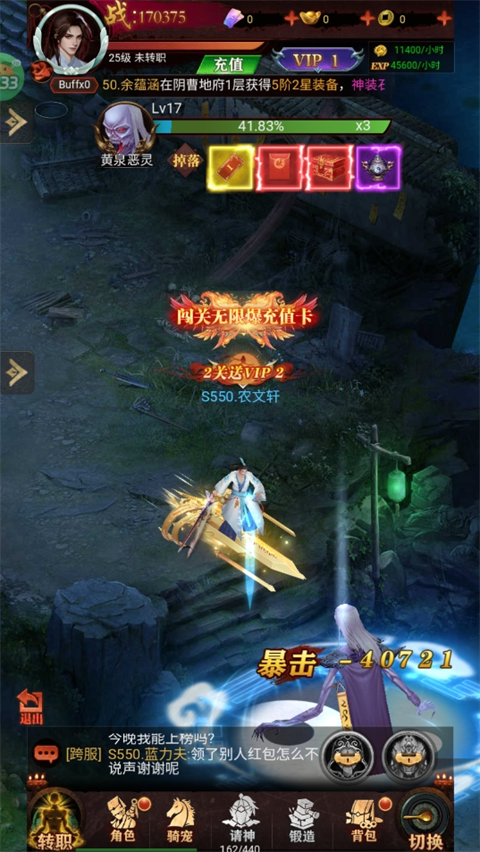 3、跨服战场:加入跨服战场,与其他服务器的玩家对抗,赢得丰厚的跨服奖励。