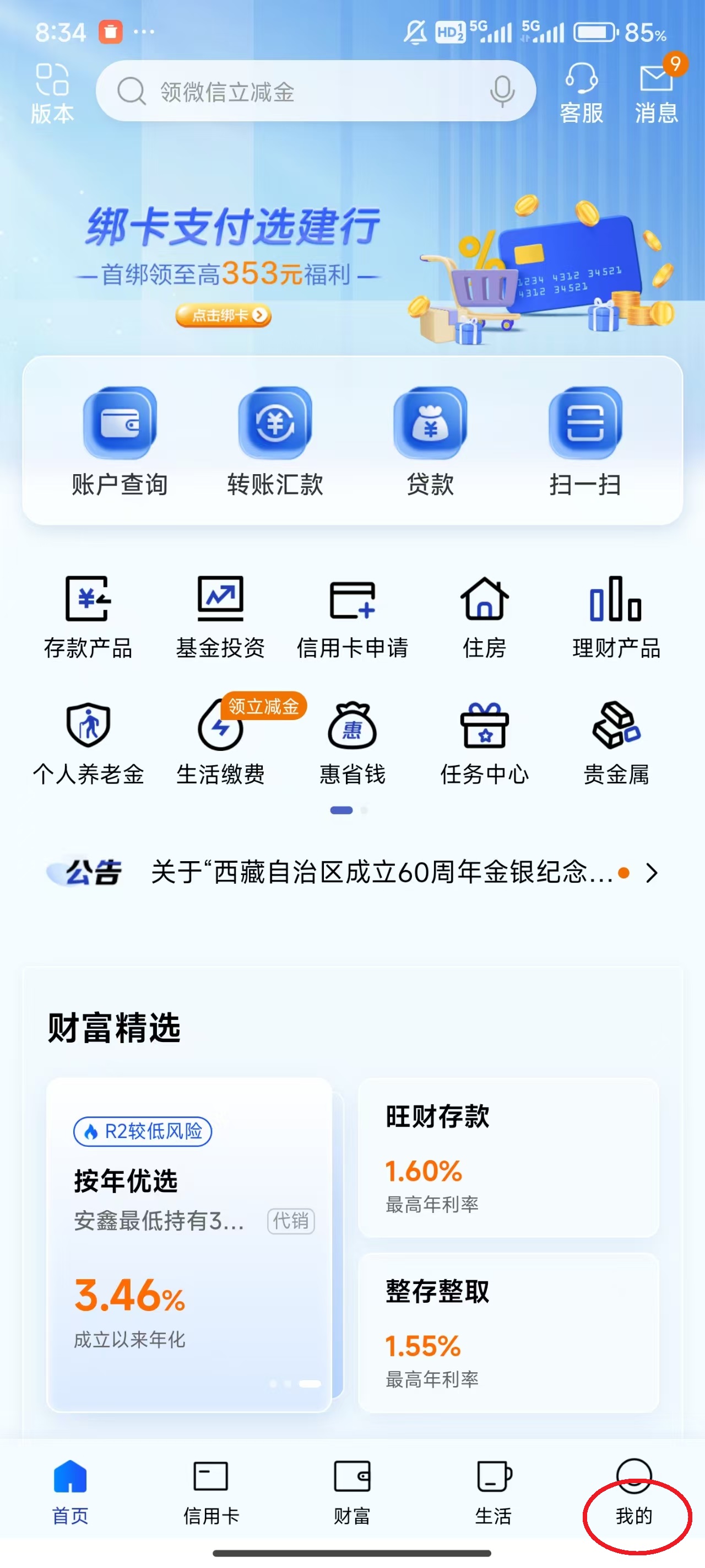 财富服务全面简洁,涵盖理财、存款、基金、贵金属等产品,“多享系列”、“四笔钱”、“资产配置”化繁为简。