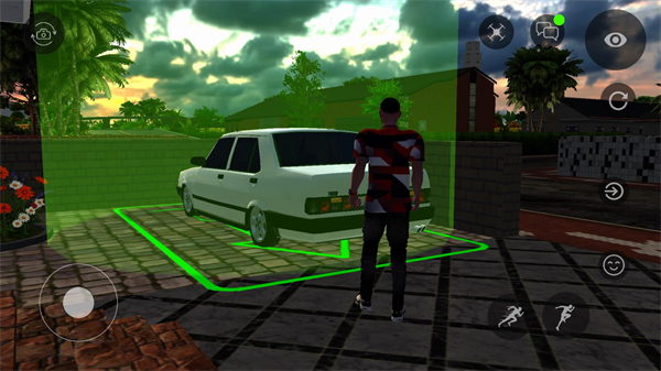 6、地图中会出现带有绿色光效的区域,将车辆停靠在这些位置后,角色即可下车,从而切换为人物自由移动模式。