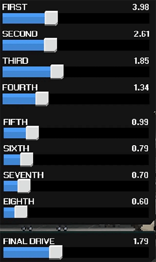 齿轮比及其他调整如下