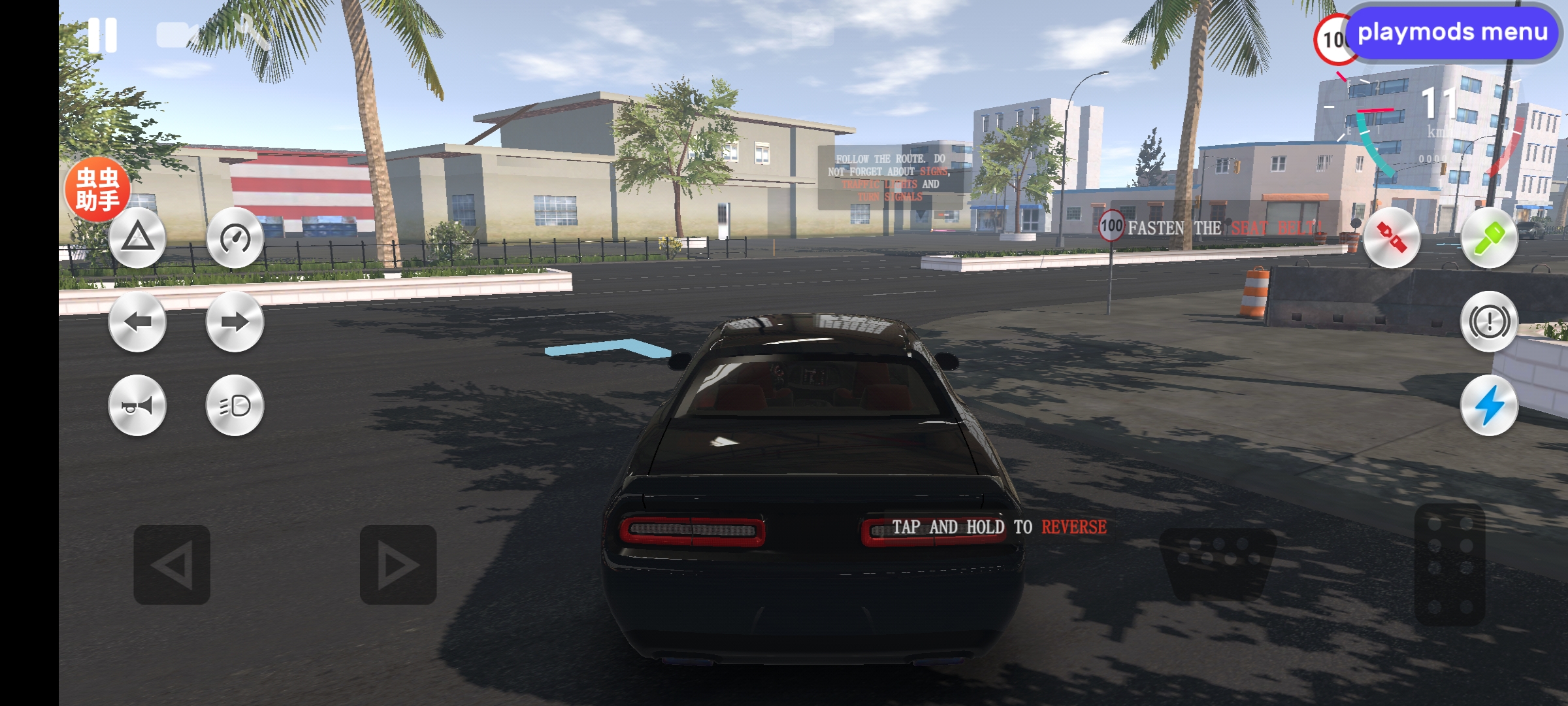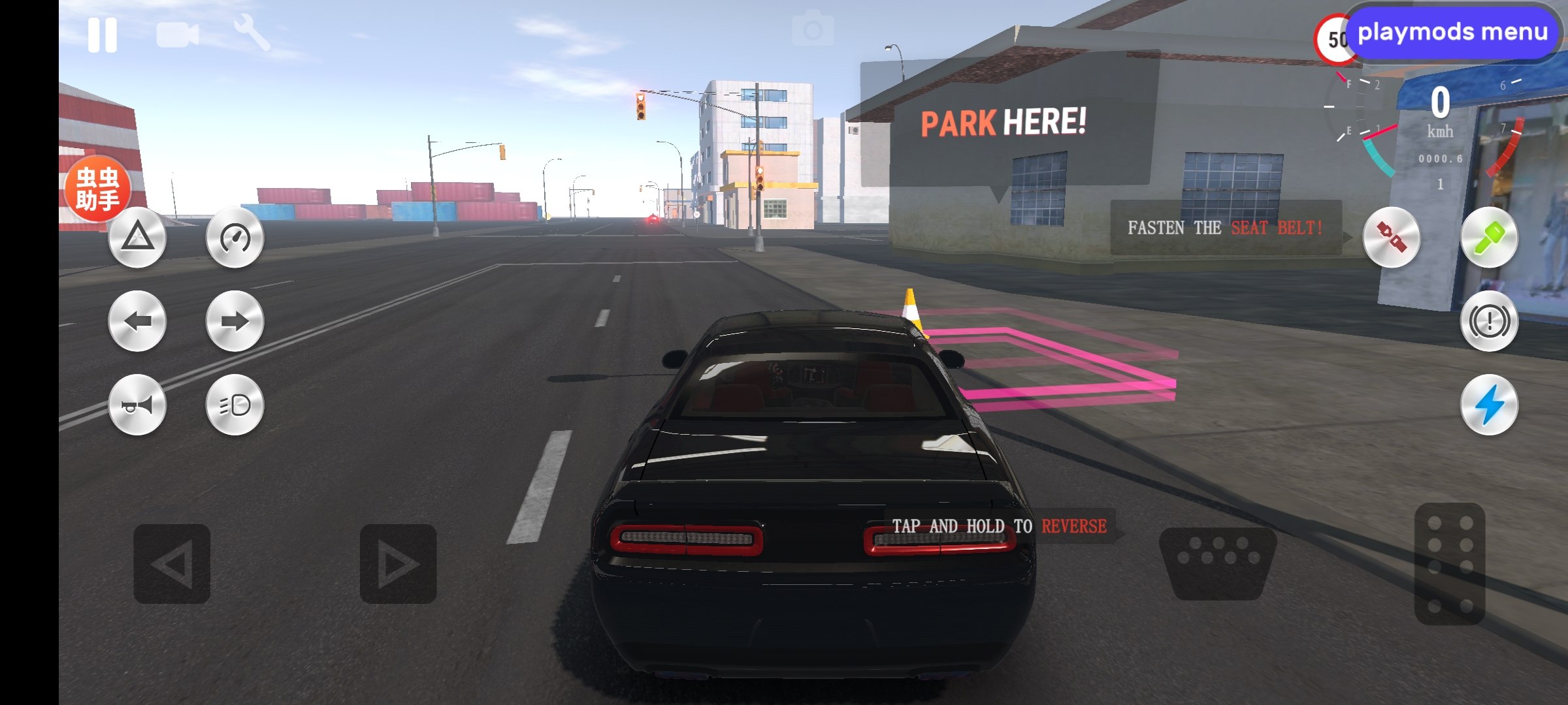 5、在路上开车,可以把车停在路边或者是倒车、掉头,体验各种驾驶操作。