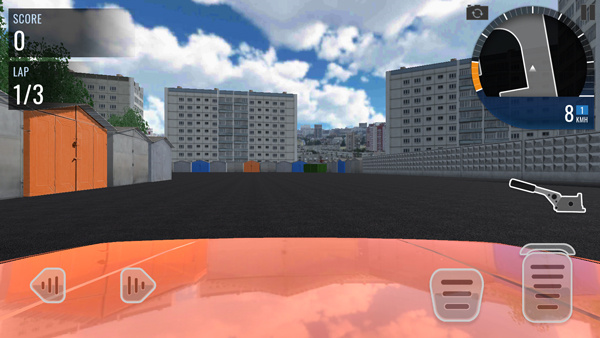 6、玩家需驾驶俄罗斯汽车进行跑圈,屏幕左边控制方向,右边则为油门和刹车;