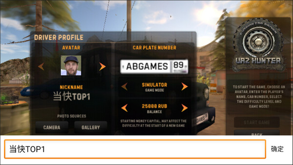 2、给自己取个名字,马上就要成为一名俄罗斯汽车猎人了