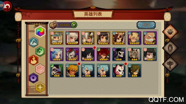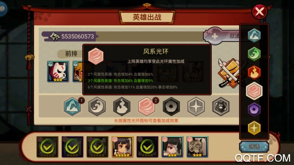 《百鬼物语》的背景设置在战国时代,英雄共分为6种属性,分别是火,地,水,风,光,暗,其中光与暗是稀有属性,英雄强力而稀有。火,地,水,风四种属性互相克制,而光与暗则单独克制。当相同属性的英雄同时上阵时,会随着上阵英雄数量的不同而触发不同的光环效果。所以我们可以根据自己的英雄自身属性进行搭配,玩法套路也是非常的丰富。