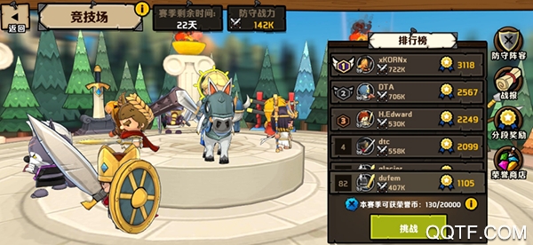 5.竞技场的积分与玩家每局的胜负关系有关,胜利增加积分,失败减少积分,玩家的排名由当前积分决定。