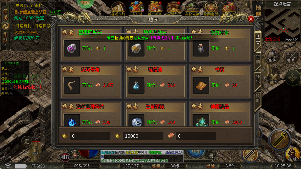 用金币购买低价道具(如回城石、治疗宝珠碎片),降低刷怪成本、提升续航。