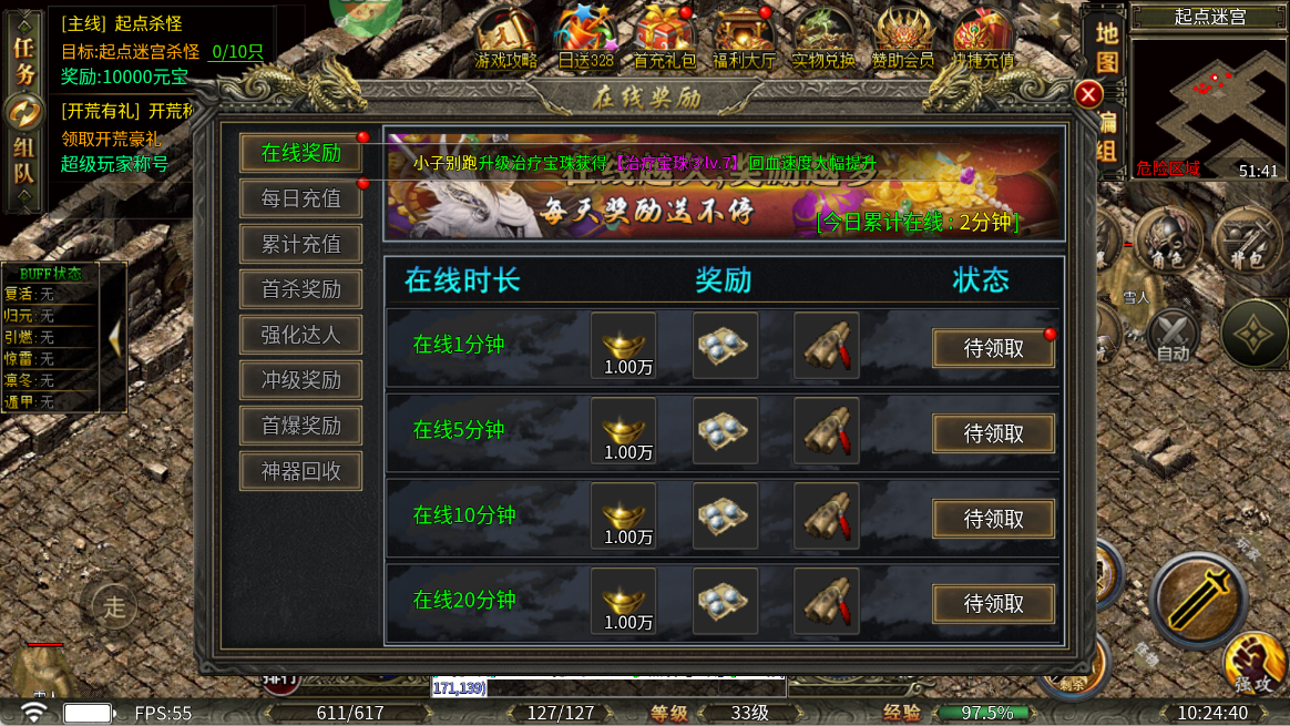 ★在线奖励★ 在线一定时长即可领取在线奖励