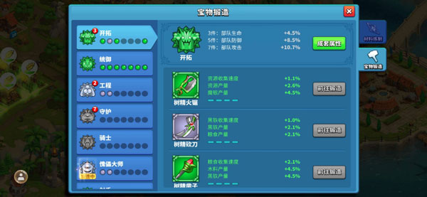 首先我们的宝物锻造来源有两个: 一.炼金房的材料炼制 炼金房的主要用途其实是用于锻造宝物的哦~大家可以先查看一下宝物套装的属性,看看哪一个套装是自己最想要锻造的,所需要的材料是哪些,就可以去炼制材料啦~记得多多炼制哦~对了,联盟礼物里也会随机出现珍惜的材料哦~