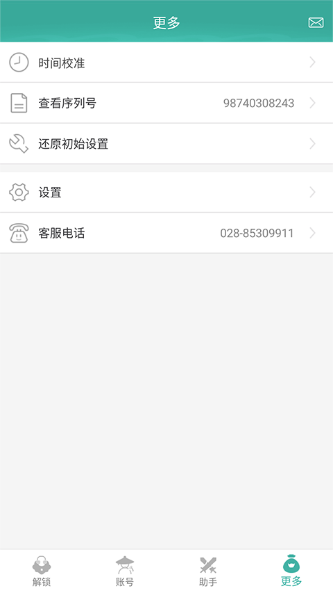 1、打开手机软件后,玲珑密保锁会自动激活,激活后将产生序列号。