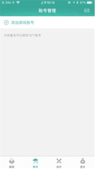 1、进入【账号】界面,点击【添加游戏账号】,输入账号并验证短信验证码后,点击【登录】即可进入到【账号安全】界面。
