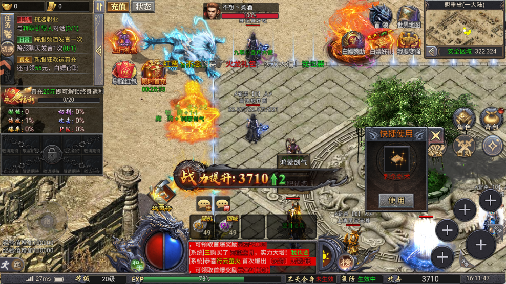 野外地图、副本、BOSS全开放掉率,小怪也能爆顶装。挂机刷副本轻松获取神装和灵符。