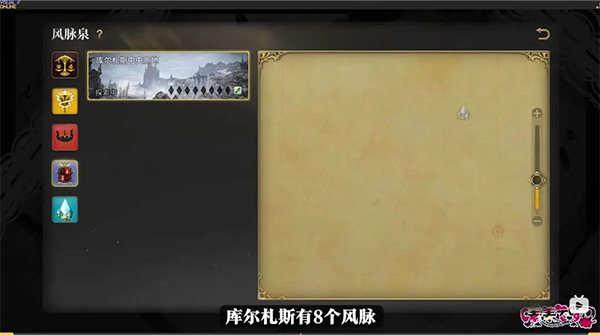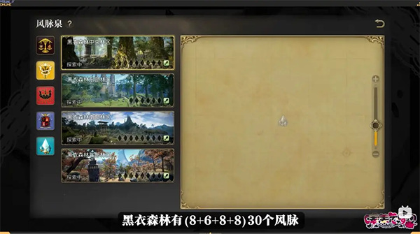 摸完以后,在风脉泉界面的地图上还会显示已完成的风脉泉的位置,下面是目前测试版本中全地图的风脉位置!大家找风脉时可以直接对照右边地图中缺少的位置就可以轻松搜集啦!