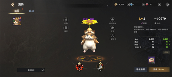通过培养宠物,升级等操作来提升宠物属性,进而助力提升角色战力