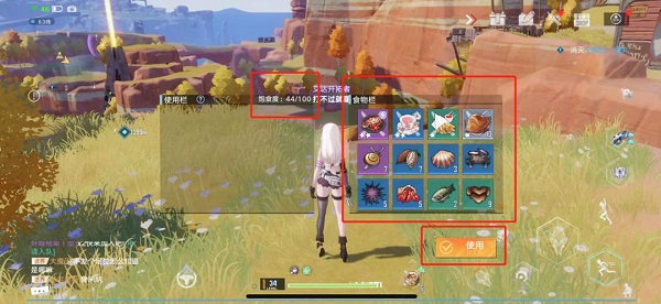 11、切换食物:点击食物上方的小箭头,可以展开食物栏,就可以看到现有的所有食物,点击后可以直接装备。