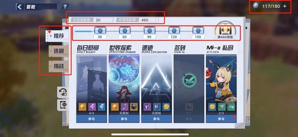 2、在没有达到经验上限之前,小伙伴们在冒险途中,带有EXP标志的功能都会可以获得经验的。不过如果已经达到经验上限的话,这些功能就无法继续提供经验了。