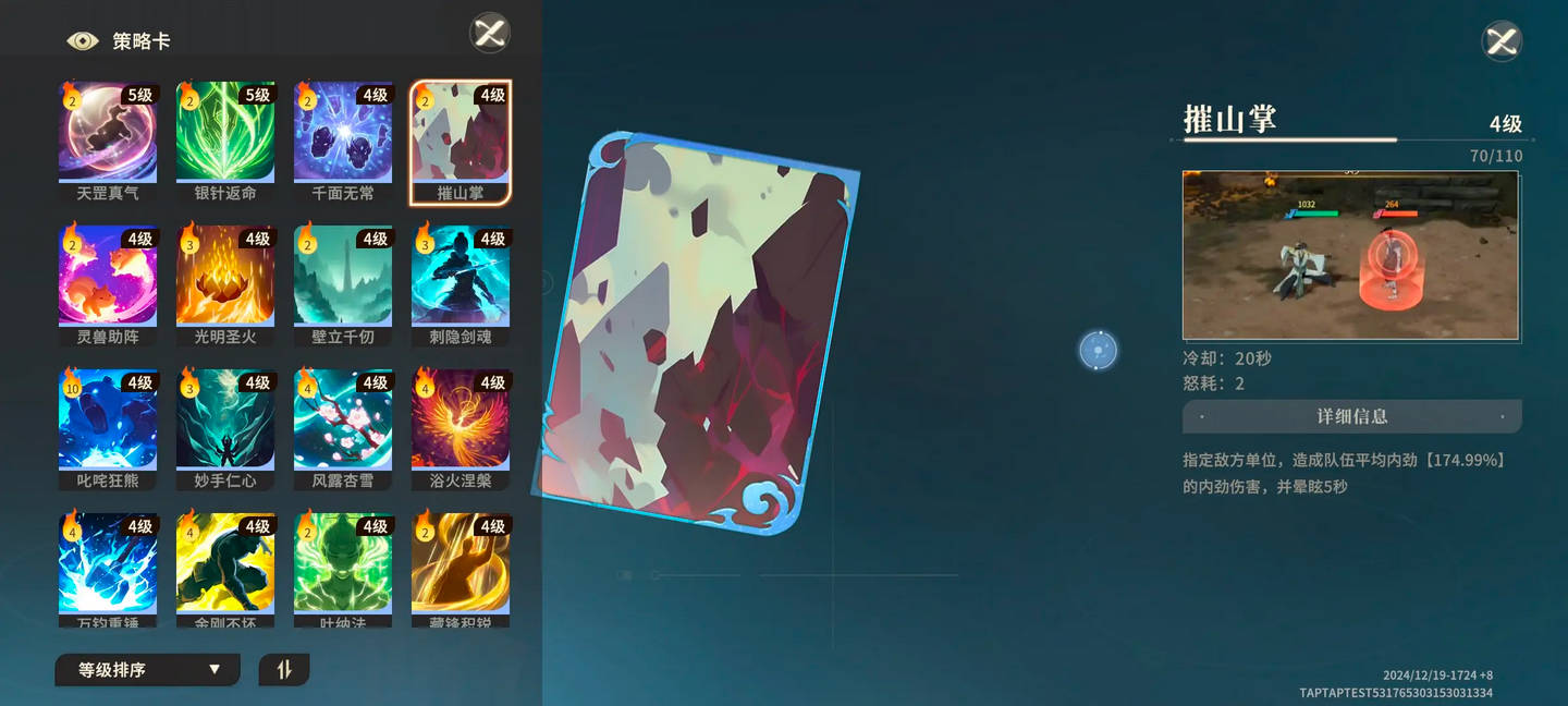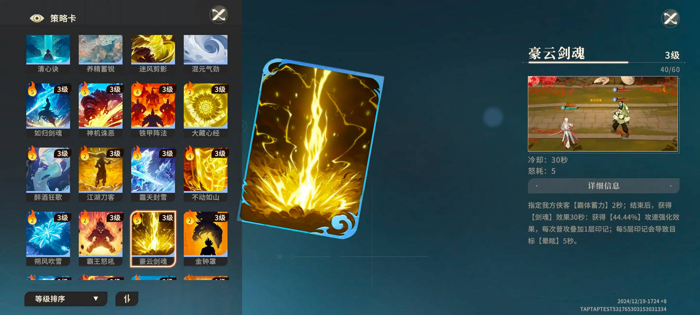 两张核心策略牌,豪云加攻速,更快打出混乱,此外还带眩晕,延长控制链,催山掌也是神技;