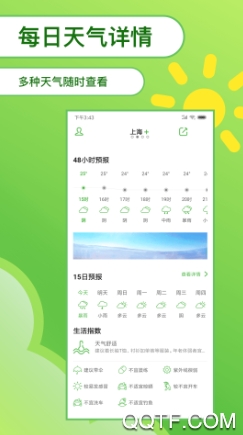 4、全面的天气指数:温度、天气状况、风向、湿度、空气质量、穿衣指数、15日预报……
