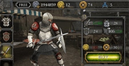 4、在游戏中,玩家所操控的骑士在佩戴好所选的武器护具就可以上场进行死亡对决,这些装备需要通过消耗金币等道具在商店购买。