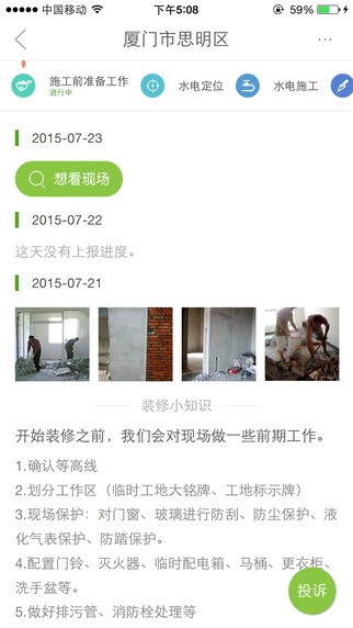 4、装修进度查看,利用家分期装修app您还可以随时随地查看装修进度,联系现场监理等等。