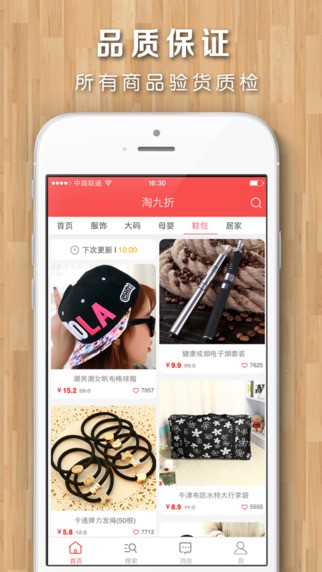 淘九折app优质折扣特卖,全场1折特卖,更有品牌折扣限时抢购,每日精选千款超值折扣,每天10点准时更新!淘九折app9.9包邮,全场9.9元包邮,物美价廉。
