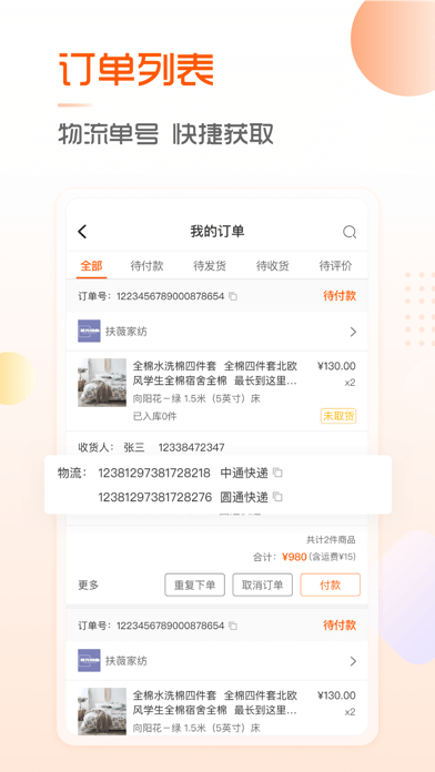 详细的订单数据跟踪,方便随时了解订单状况;