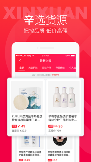 辛选帮app是一款全新的直播卖货软件,辛选帮app拥有更加强大的功能和优质的货源,在辛选帮app用户可以随时开播卖货,支持一件代发。