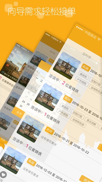 蜜蜂向导导游版是为已认证成为蜜蜂向导用户使用的一款工具。通过该平台,可为全球旅游爱好者提供向导(导游)的旅游服务。其缜密严谨的实名验证体系、细致周全的跟踪服务流程、交朋识友的社交人文社区等特色,都已在平台系统中实现操作。参与设计与开发人员中都是具有旅游行业多年经验的资深专家,这让这款工具能够为更多的蜜蜂向导提供高效率的运用。