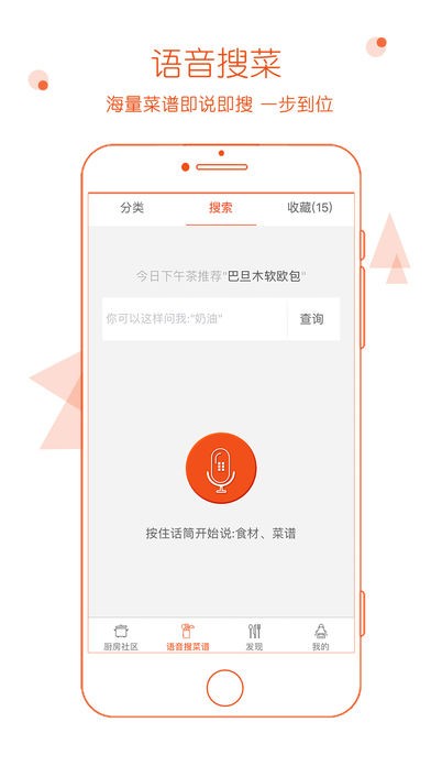 ·语音搜菜谱:网罗线上海量菜谱,即说即搜, 原汁原味一步到位。