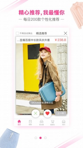 衣蝠拥有业内领先的个性化推荐引擎。用户所有的浏览,点赞、收藏、关注、分享等行为,都会成为下次我们为您推荐衣服的依据;