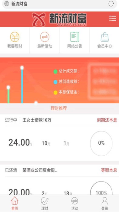 新流财富app是一款提供投资理财服务的手机应用。新流财富app主要为广大用户提供安全,方便,稳定,收益高的理财服务,使你实现财产的增值。想要进行理财的你不要错过哦!