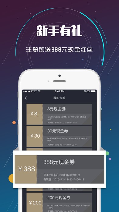 新手大礼:凡注册微金石理财的用户均可获得388元的现金红包。