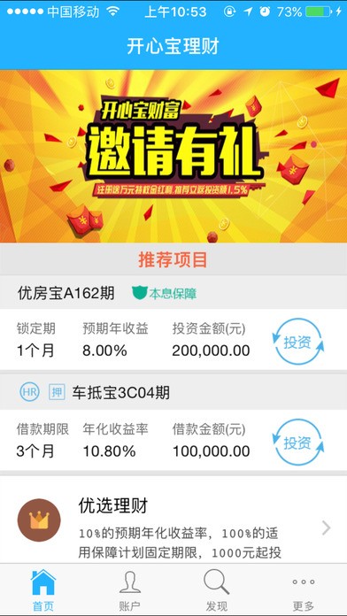 开心宝财富app是一款提供投资理财服务的手机应用。开心宝财富app主要为投资者提供各种理财项目,你可以根据自己的需求选择合适的理财服务,并且开心宝财富app官方理财具有稳定,安全,收益高等特点。想要理财的你不妨试一试!