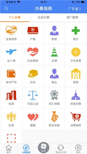 3.广东政务服务app为进一步突显网上办事服务功能,对页面进行了适当的改版调整,主要是将原“网上办事”栏目分设为“法人事项”和“个人事项”两个栏目,将原“投资审批”栏目设置在“法人事项”栏目下,建立“投资项目审批平台”,与“公共资源交易平台”和“省级专项资金管理平台”一起形成3大专题服务入口。
