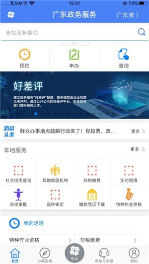 1.广东政务服务app是广东省政府推出的移动办事便民服务应用广东网上办事大厅app汇集了广东省、市、区(县)三级业务部门的事项办事指南、提供在线申办、办事进度查询、对办结事项进行服务评议等功能。