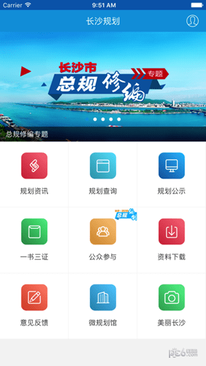 长沙规划app主要内容包括规划资讯、规划查询、规划公示、一书三证、公众参与、资料下载、意见反馈、微规划馆、美丽长沙。