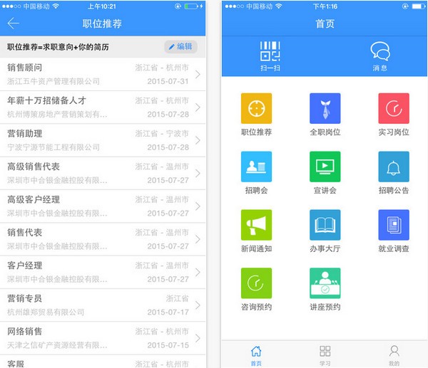 1)更便利的求职通道:学生通过智能手机可在任意时间任意地点获取最新的就业信息,管理求职简历,并申请有合适的职位;