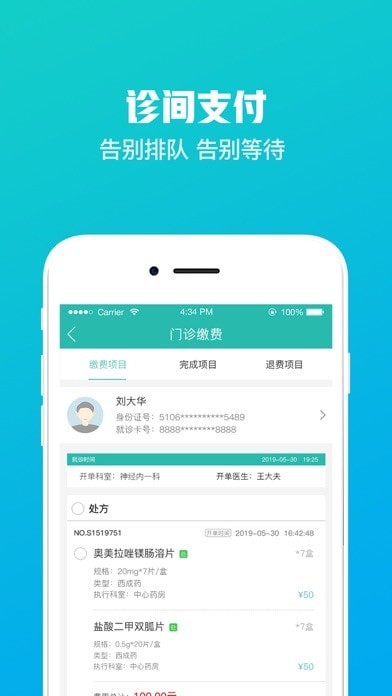 4、诊间费用随性付,支持支付宝和微信支付